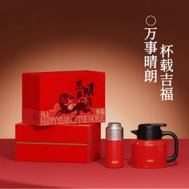 OUDON保温杯 万事晴朗 温显闷茶壶 闷茶杯新年礼物礼盒 可定制 红色