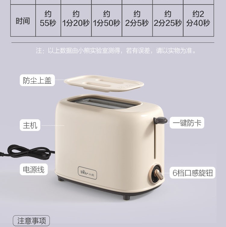 小熊 DSL-C02K8 烤面包机多功能多士炉 烘烤不锈钢吐司加热