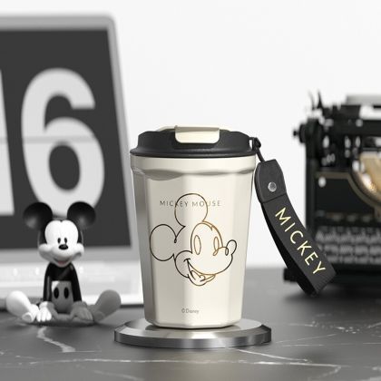 格沵(germ)迪士尼联名保温咖啡杯便携翻盖即饮水杯车载保温杯子390ml米奇白